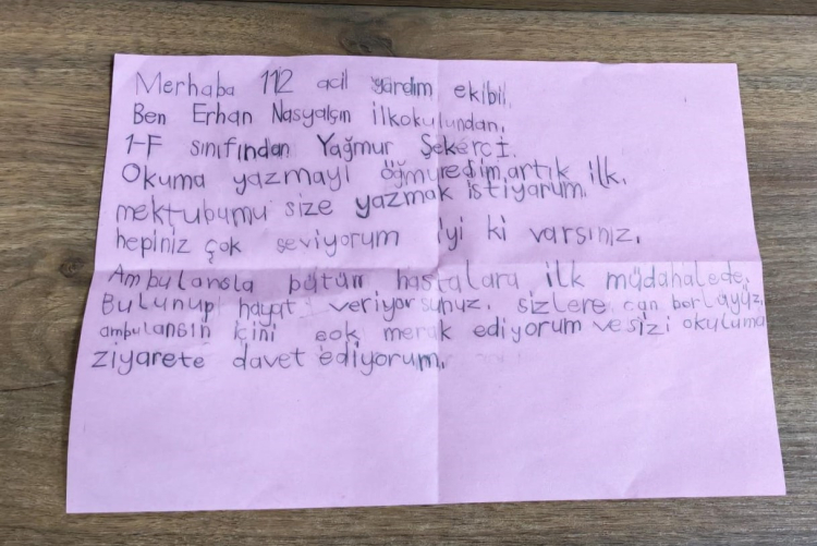 Bursa’da yaşayan Erhan Nasyalçın İlkokulu 1. sınıf öğrencisi Yağmur Şekerci, çok merak ettiği ambulansı yakından görmek için Bursa 112 Ambulans Başhekimliği’ne hitaben bir mektup yazdı. Mektubunda en büyük isteğinin okuluna bir ambulans gelmesi olduğunu belirten Yağmur’un bu isteği, 112 tarafından gerçekleştirilince oldukça güzel görüntüler ortaya çıktı.