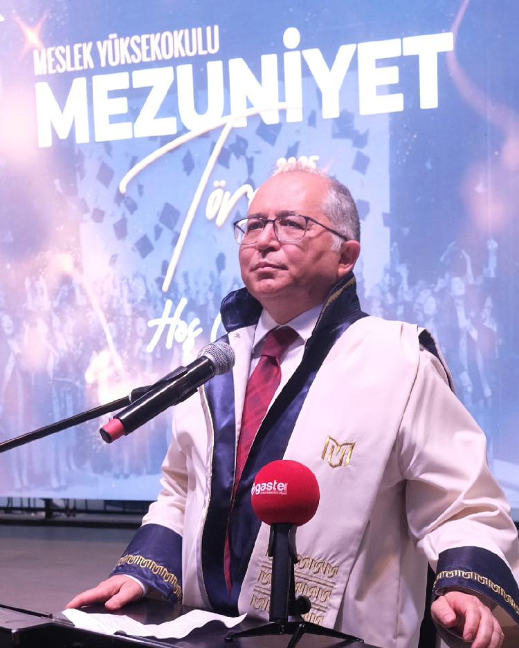 "Eğitim hayatınızdaki önemli dönüm noktalarından olan üniversite eğitiminizi başarıyla tamamladınız. Sizler, yalnızca akademik bilgiyle değil, gerçek sektör deneyimiyle yetiştiniz. İşletmede Mesleki Eğitim modelimizle sahaya indiniz, mesleğinizi sadece öğrenmekle kalmadınız, yaşadınız. Hastanelerde, 112 acil yardım istasyonlarında, sahada ter döktünüz. Bu topraklarda üretmenin, çözüm bulmanın, emek vermenin ne demek olduğunu bizzat deneyimlediniz. Bu, bir sınıfın dört duvarı arasına sığmayacak kadar kıymetli bir birikimdir. Ve bu birikimle iş hayatına, hatta hayatın ta kendisine adım atıyorsunuz. Her birinizle ayrı ayrı gurur duyduğumuzu ve gönül rahatlığı ile sizleri uğurladığımızı bilmenizi isterim. Önünüzde kendiniz, aileniz ve ülkemize karşı sorumluluklarınızın olduğu bilinciyle yapacağınız daha çok şey var. Mudanya Üniversitesi mezunu olmanın ayrıcalığı ile sizden sonra mezun olacak arkadaşlarınıza el vermeyi, birbirinize destek olmayı, koruyup kollamayı sakın unutmayın."