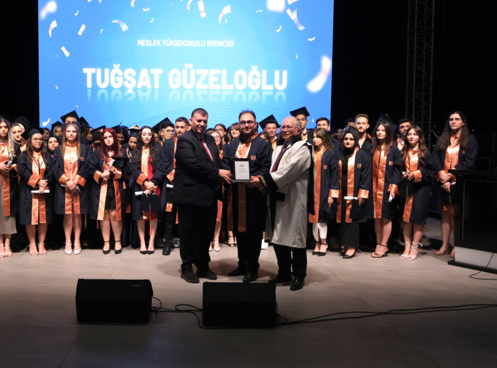 Konuşmaların ardından Fizyoterapi, İlk ve Acil Yardım, Anestezi ve Tıbbi Görüntüleme Teknikleri programları öğrencileri sahneye çıkarak diplomalarını aldı. Tıbbi Görüntüleme Teknikleri Programı birincisi Zeynep Demir, İlk ve Acil Yardım Programı birincisi Sude Varol, Fizyoterapi Programı birincisi Tuğşat Güzeloğlu, Anestezi Programı birincisi Buse Özden ile Meslek Yüksekokulu birincisi Tuğşat Güzeloğlu’na plaket verilen tören, öğrencilerin hep birlikte keplerini havaya atmalarıyla sona erdi.