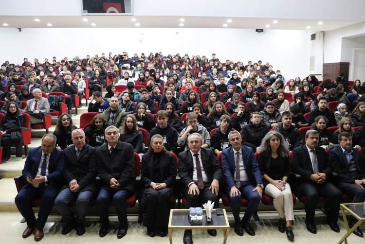 Prof. Dr. Burcu Özsoy, ‘Kutuplar ve İklim Değişikliği’ teması çerçevesinde gerçekleştirilen programda, Antarktika’da yürütülen araştırmalar ve iklim değişikliğinin etkileri hakkında öğrencilere kapsamlı bilgiler aktardı.