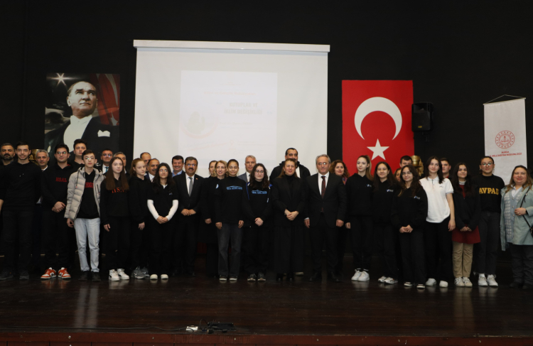 Bursa İl Milli Eğitim Müdürlüğü tarafından Türkiye Yüzyılı Maarif Modeli öncelikleri doğrultusunda gençlerin bilim, teknoloji, kültür, sanat ve felsefe alanlarında gelişimlerini destekleyerek farkındalıklarını artırmak amacıyla projelendirilen “Köklerden Geleceğe Bilim ve Gençlik Buluşmaları” kapsamında, TÜBİTAK Marmara Araştırma Merkezi Başkanı Prof. Dr. Burcu Özsoy, BTSO Oğuz Kağan Köksal Konferans Salonu’nda öğretmen ve öğrencilerle bir araya geldi.