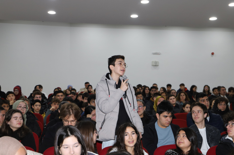 Etkinlik boyunca öğrenciler, kutuplar ve iklim değişikliği konusunda merak ettikleri soruları sorma fırsatı bulurken, Prof. Dr. Burcu Özsoy'un etkileyici sunumu öğrenciler arasında büyük bir ilgi ve heyecan uyandırdı.