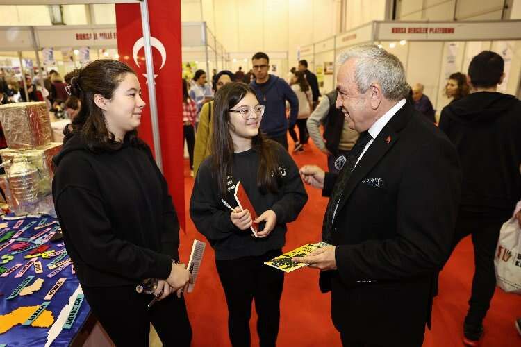 Nilüfer Belediye Başkan Adayı Şadi Özdemir, TÜYAP Kitap Fuarı’nın son gününde fuarı gezdi. Gençlerle ve öğrencilerle fuarda sohbet eden Özdemir, onlara kitap hediye ederek, mutlaka kitap okumalarını tavsiye etti.