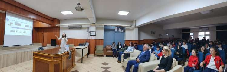 Söyleşide Terzioğlu’nun konusu ambalajlarda sürdürülebilirlik kavramı oldu. Etkinliğe, okul müdürü, öğretmen ve öğrenciler katıldı.