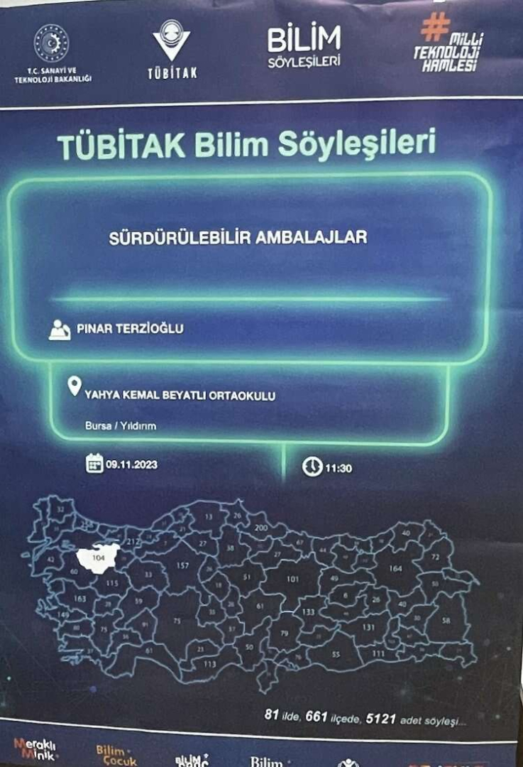 Bursa Teknik Üniversitesi (BTÜ) Mühendislik ve Doğa Bilimleri Fakültesi Polimer Malzeme Mühendisliği Bölümü Öğretim Üyesi Doç. Dr. Pınar Terzioğlu, TÜBİTAK Bilim Söyleşileri Etkinliği kapsamında Bursa Yahya Kemal Beyatlı Ortaokulu öğrencileri ile bir araya geldi.