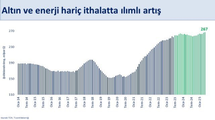 Zorlu küresel koşullar, artan rekabet ve takvim etkisine rağmen ihracatın yıllık yüzde 2,7 artış gösterdiğini belirten Şimşek, ithalatın ise yüzde 2,1 yükseldiğini duyurdu. Yıllıklandırılmış dış ticaret açığının geçen aya göre yatay seyrettiğini ifade etti.