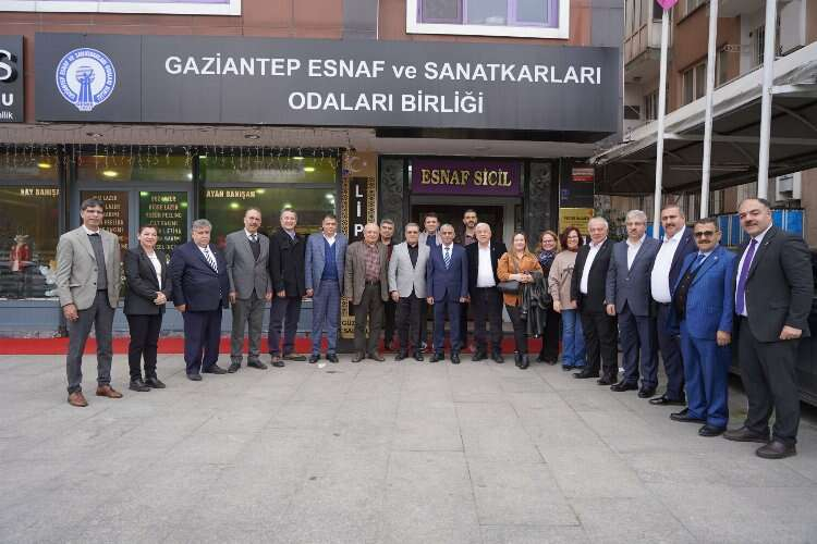 Bursa Esnaf ve Sanatkarlar Odaları Birliği (BESOB) Başkanı Fahrettin Bilgit ile beraberindeki yönetim kurulu üyeleri ve oda başkanları, Gaziantep Esnaf ve Sanatkarlar Odaları Birliği (GESOB) Yönetim Kurulunu ziyaret etti.