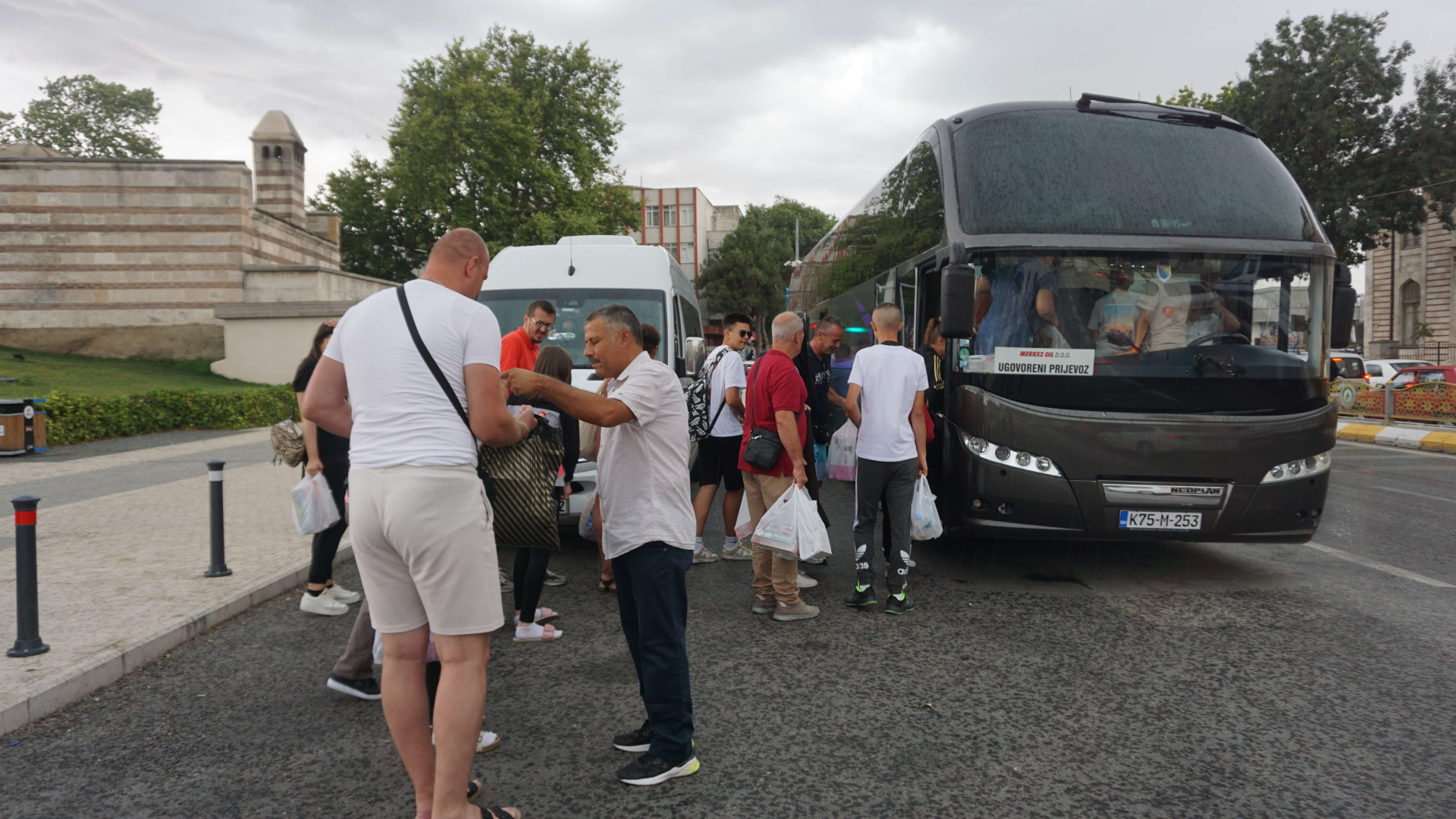 Edirne'den yaptıkları alışverişleri ve eşyalarını bagaja yerleştiren Bosna Hersekli turistler, daha sonra tur otobüsüne binerek kentten ayrıldı.