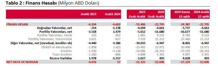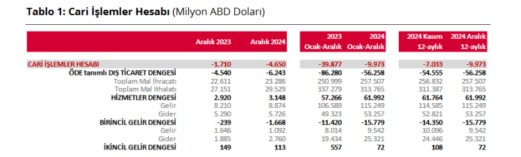 Türkiye Cumhuriyet Merkez Bankası, 2024 yılının son ayına ilşikin Ödemeler Dengesi İstatistiklerini yayımladı.