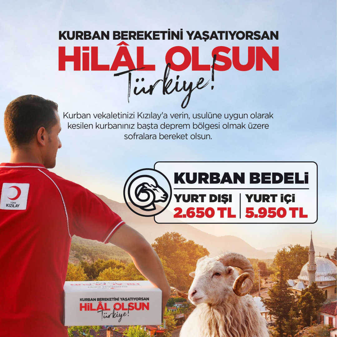 “Kurban bereketini yıl boyu yaşatıyorsan hilal olsun Türkiye” sloganıyla kurban kesim kampanyasını başlatan Kızılay, vekalet bedellerini açıkladı. Türkiye dahil 23 ülkede toplam 128 bin hisselik kurban kesmeyi hedefleyen Kızılay, Et ve Süt Kurumu iş birliğiyle hazırlayacağı kurban paylarının önemli bir bölümünü Kahramanmaraş merkezli depremlerin etkilediği afetzedelere et olarak dağıtacak. Kurban paylarından aşevlerinde sıcak yemek de yapacak olan Kızılay, Kurban Bayramı'nın getirdiği manevi atmosferi ve sevinci yıl boyunca yaşatmak için Et ve Süt Kurumu iş birliğiyle kavurma konservesi de yapacak.