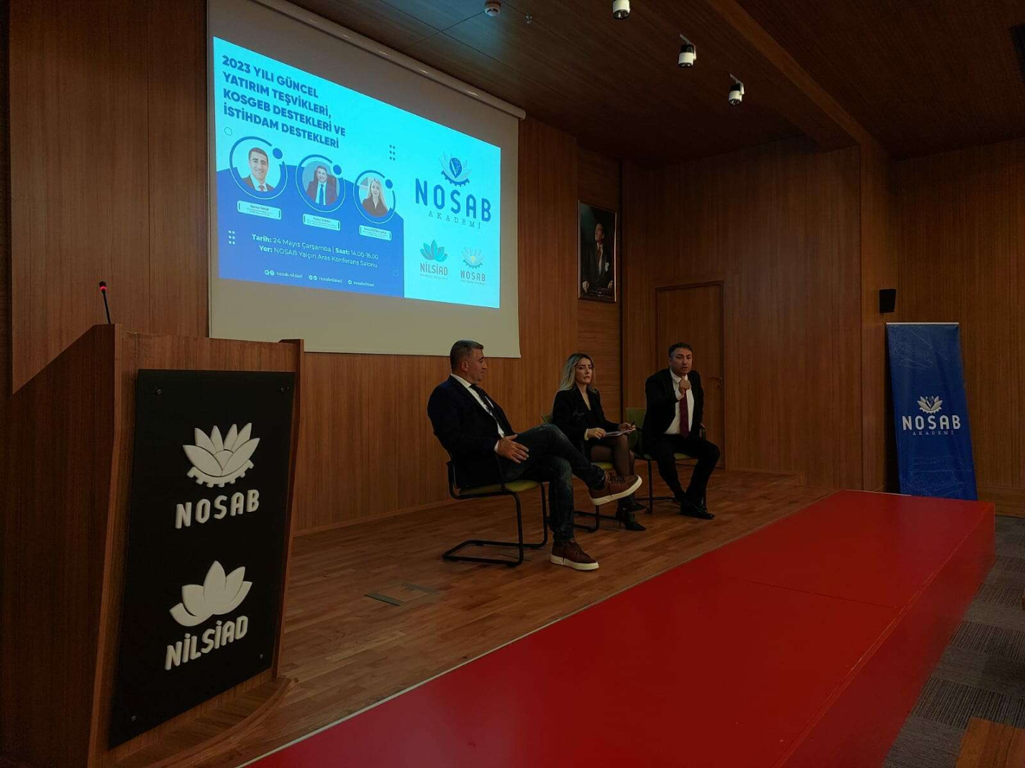 Mayıs ayında devlet destekleri konusunda düzenlenen eğitimlerin sonuncusu, "2023 Yılı Güncel Yatırım Teşvikleri, KOSGEB ve İstihdam Destekleri" başlığıyla Yalçın Aras Konferans Salonu'nda gerçekleşti. Eğitimin konuşmacıları ise COBUS İş Geliştirme & Danışmanlık Kurucusu Kemal Sakin, Türker Finansal Danışmalık Yönetim Kurulu Başkanı Türker Duran ve Türker Finansal Danışmanlık Yönetim Kurulu Üyesi Berna Öztürk Çaral oldu.