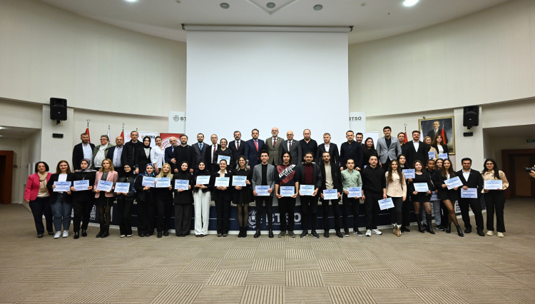 BTSO E-Ticaret ve Dijitalleşme Konseyi Başkanı İlker Özgüven, dönüşüm merkezinin çalışmaları doğrultusunda yapılan eğitim faaliyetlerine ilişkin sunum gerçekleştirdi. Açılış konuşmalarının ve sunumların ardından Gürsu Belediyesi tarafından, Bursa Eskişehir Bilecik Kalkınma Ajansı Sosyal Gelişmeyi Destekleme Programı (SOGEP) kapsamında hayata geçirilen ve BTSO’nun paydaşları arasında yer aldığı “Genç Dijital Girişimcilik Akademisi” 5’inci dönem sertifika töreni düzenlendi. Programa katılan gençler, 120 saatlik teorik eğitim ve 80 saatlik saha deneyimiyle donanımlı bir girişimcilik süreci geçirdi.