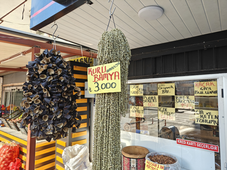 Ramazan'ın yaklaşmasıyla birlikte iftar sofralarının vazgeçilmezleri arasında olan bamya da tezgahlarda yerini aldı. Kuru yerli bamyanın kilosu 3 bin TL'den satışa sunulurken, ithal bamya da 2 bin 500-2 bin 600 TL arasında satılıyor.