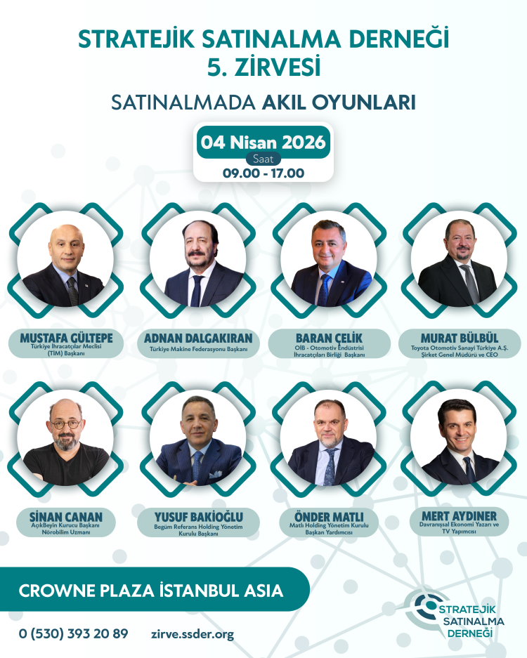 Stratejik Satınalma Derneği (SSD) tarafından bu yıl beşinci kez düzenlenecek olan SSD Zirvesi, 4 Nisan 2026 tarihinde Crowne Plaza İstanbul Asia’da gerçekleştirilecek. “Satınalmada Akıl Oyunları” temasıyla kapılarını açacak olan zirve; TİM Başkanı Mustafa Gültepe’den Toyota Türkiye CEO’su Murat Bülbül’e kadar iş dünyasının en önemli liderlerini ve 800’ü aşkın profesyoneli buluşturacak.