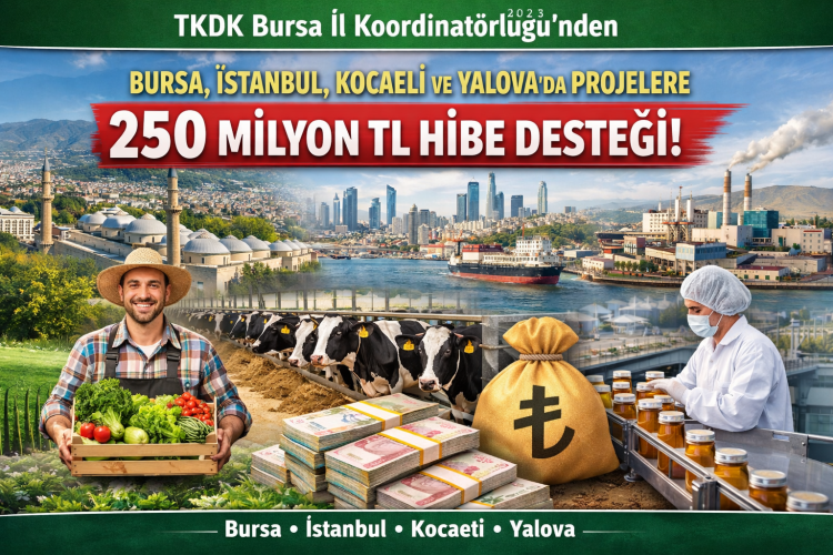 Tarım ve Kırsal Kalkınmayı Destekleme Kurumu (TKDK) Bursa İl Koordinatörlüğü, 2025 yılında Bursa, İstanbul, Kocaeli ve Yalova’da hayat bulan projelere yaklaşık 250 milyon TL’lik hibe desteği sağladı.