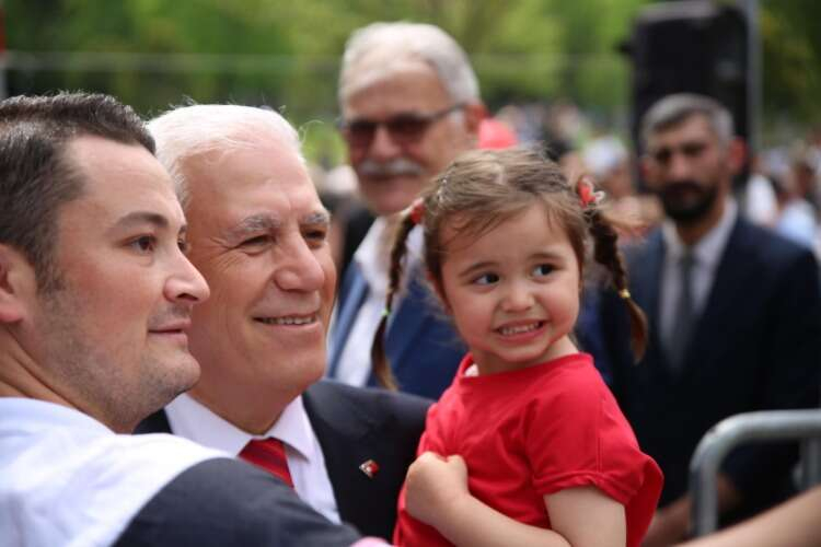 Gazi Mustafa Kemal Atatürk’ün 23 Nisan’ı çocuklara armağan ederek çocukların ne kadar değerli olduğunu gösterdiğini söyleyen Büyükşehir Belediye Başkanı Mustafa Bozbey, “Gülümseyen yüzleriyle bugün burada bir araya gelen sevgili çocuklar, bugün sizin bayramınız. Yaşasın Cumhuriyet, yaşasın 23 Nisan, Yaşasın çocuklarımız” dedi.