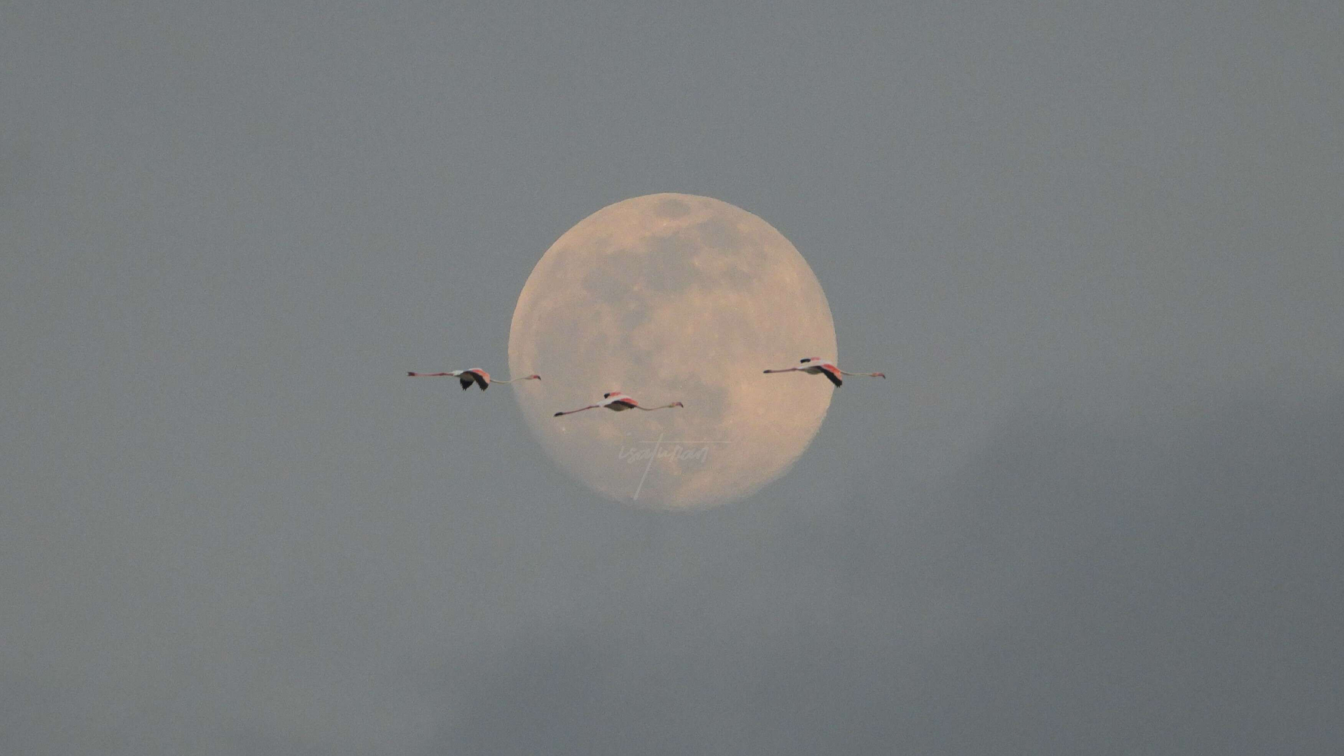 ‘Pembe Ay’ olarak belirtilen Nisan ayında Gediz Deltası Kuş Cenneti İzmir’de yakaladığı o anda ise flamingoların ayın önünden geçtiği görüldü. ‘Çiçek Ayı’ olarak bilinen Mayıs ayında ise dolunay İzmir’in Tirazlı köyünde görüntülendi.