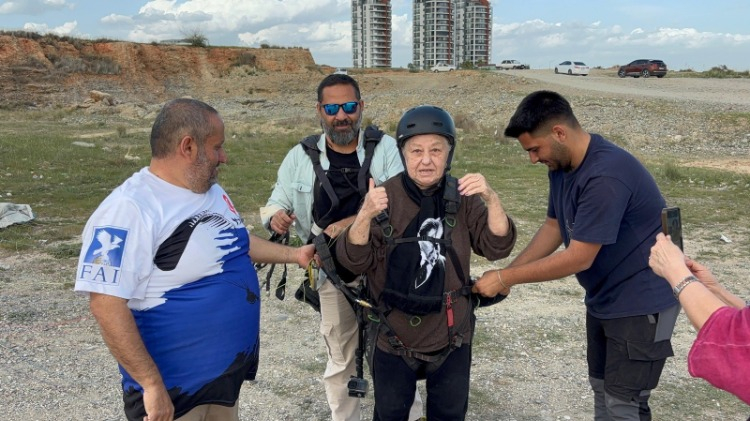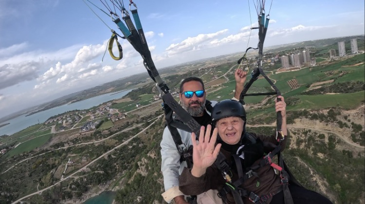 Adana'da yamaç paraşütü ile uçan eski belediye başkanının 83 yaşındaki eşi 'ölmeden önce uçmak istedim. Bunu başardığım için çok mutluyum' dedi.