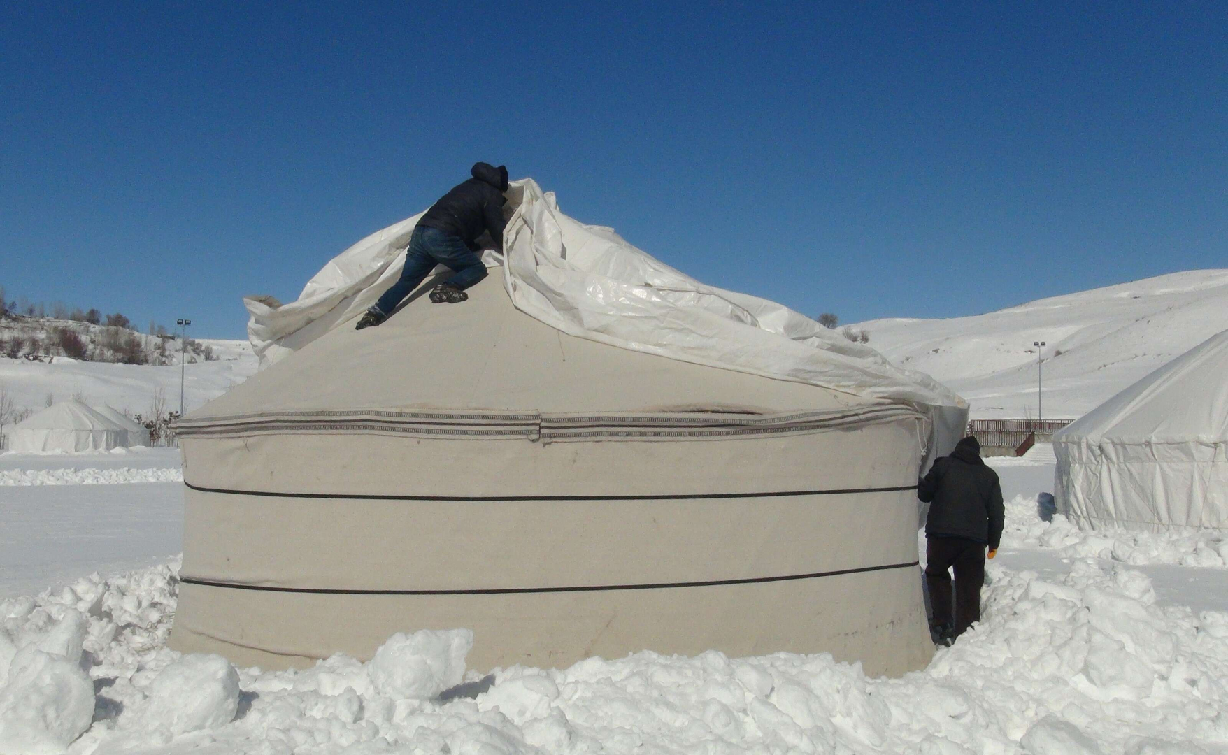 Yoğun kar örtüsünün ve soğuk havanın hakim olduğu bölgede görevlendirilen ekip, hummalı bir çalışma yaparak çadırların sökümünü yapıyor. Sökülen çadırlar, depremden etkilenen depremzede ailelerin barınması için Kahramanmaraş’ın Pazarcık ilçesine kurulacak. Aynı şekilde Malazgirt ilçesinde bulunan 50 çadırın da deprem bölgesine gönderileceği belirtildi.