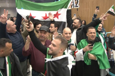 Suriyeliler, Şam'a giderken Arapça “Başını dik tut, artık özgürsün Suriye“ şarkısını söyledi.