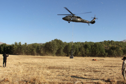 Jandarma Genel Komutanlığı’na ait helikopter, 1650 metre rakımlı Kımıl Dağı’ndan Kommagene Uygarlığına ait 2100 yıllık tarihi eserleri taşıdı.