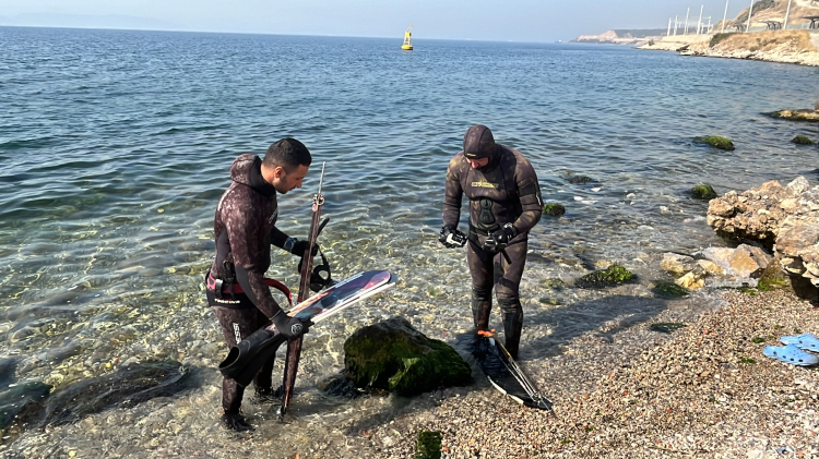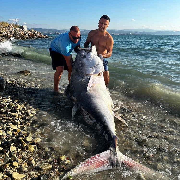 Kocaeli'nin Gebze kıyılarında dalgıçlar, zıpkınla 2.5 metre uzunluğunda, 320 kilogram ağırlığında mavi yüzgeçli orkinos avladı. Orkinos, üçüncü günün sonunda kıyıya çıkartıldı. Dalgıçlar, balığı sokak hayvanlarına ve ihtiyacı olanlara verdiklerini belirtti.