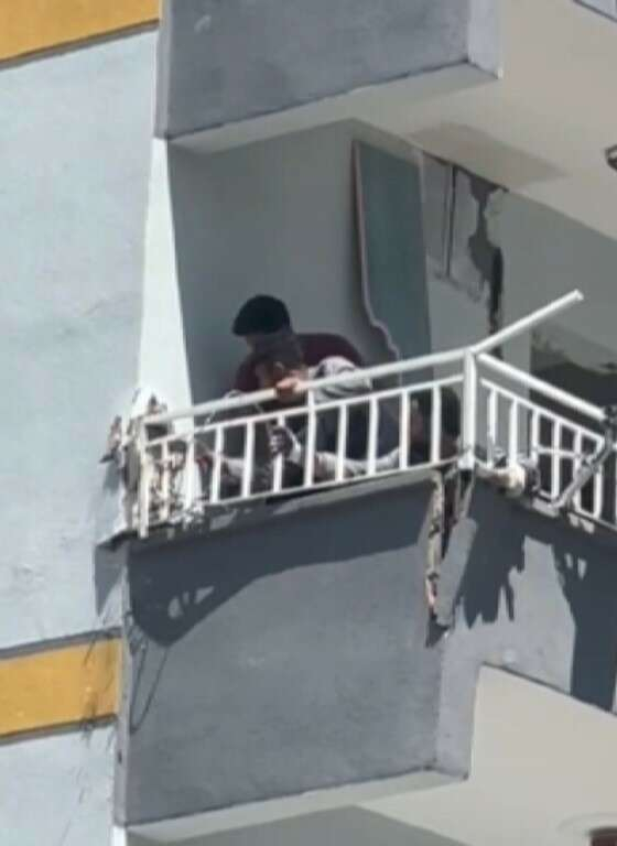 Vatandaşın kamerasına yansıyan görüntülerde güvenlik şeridinin çekilmediği apartmanın balkonunda hurdacılar demiri sökmek için duvarları yıkıp öyle çıkardığı görüldü.