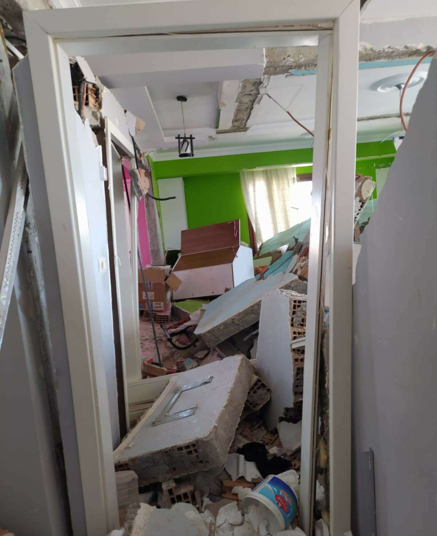 Serpil Rüşvanlı’nın, “Kapkap” isimli kaplumbağayı 38 gün sonra sağ halde bulduğu dairenin görüntüsü de cep telefonu kamerası ile kaydedildi. Görüntüde, evdeki tüm duvarların yıkıldığı, eşyaların da kullanılamayacak hale geldiği görüldü.