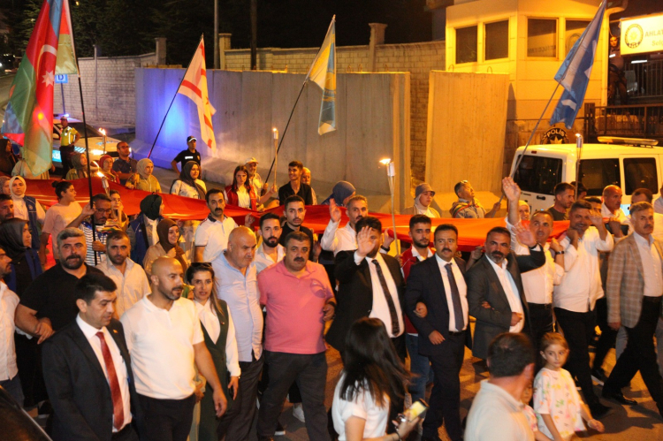 Ahlat’ta Türk bayrağı ve meşalelerle “fener alayı” yürüyüşü yapıldı