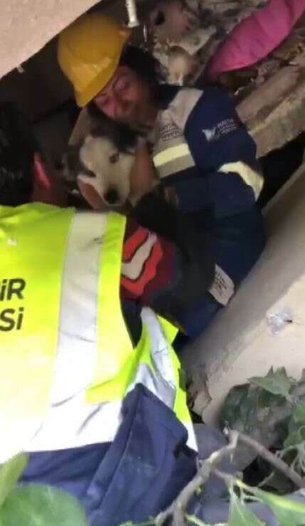 Depremden 23 sonra Hatay’ın Antakya ilçesinde “Aleks” adlı köpek enkazdan kurtarıldı.