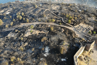 Çanakkale'de çıkan orman yangınından etkilenen 7 bin yıllık Assos Ören Yeri ile Athena Tapınağı dron ile görüntülendi.