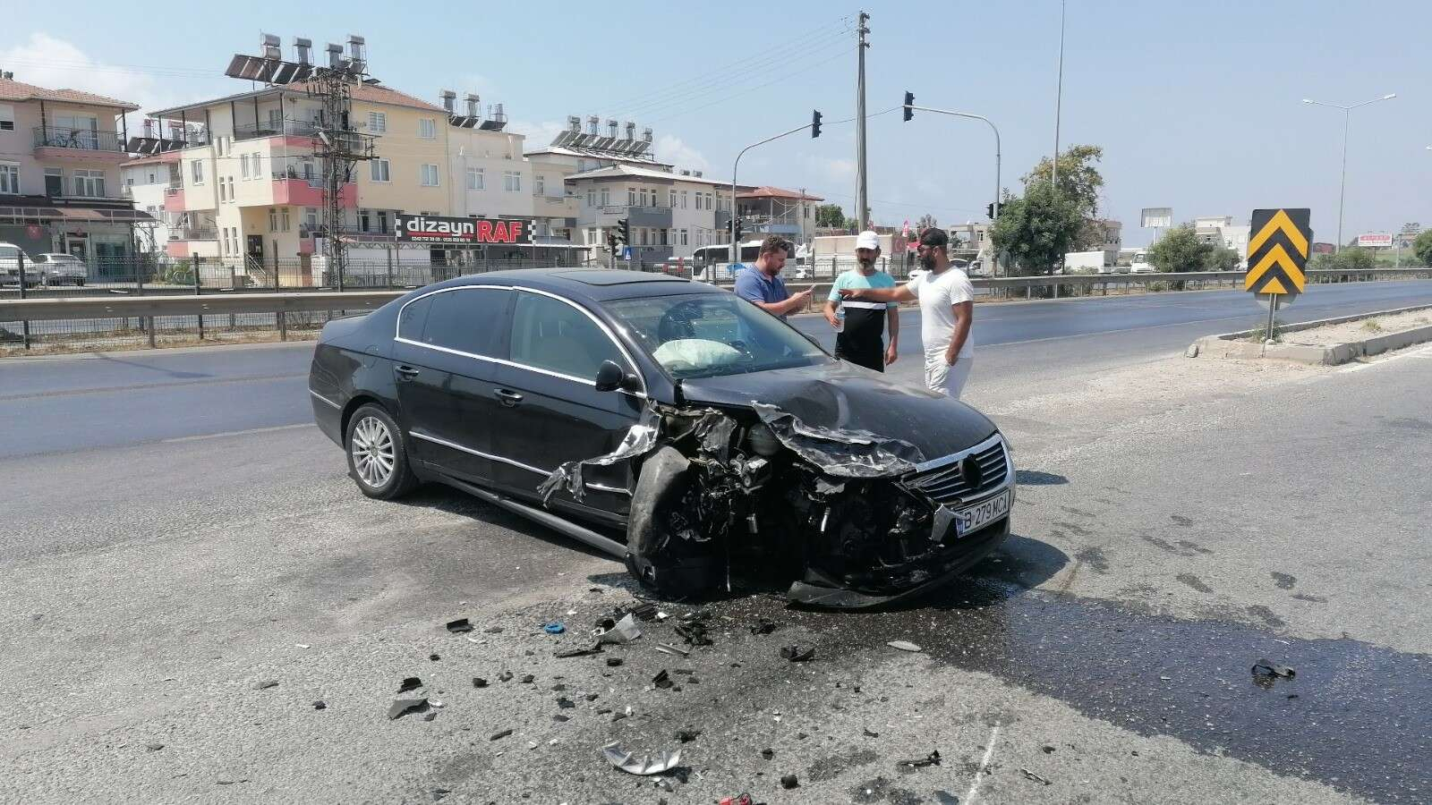 Kaza, Manavgat-Antalya D-400 Karayolu Hatipler kavşağında meydana geldi. Antalya istikametine seyir halindeki Romanya vatandaşı Marıus Casmin Aldea’nın kullandığı B 279 MCA plakalı otomobil, kavşaktan tali yola döndüğü sırada Gültepe istikametinden ilçe merkezine ilerleyen Mustafa Çelik’in kullandığı 07 L 4004 plakalı otomobil ile çarpıştı. Her iki otomobilin hurdaya döndüğü kazada, Mustafa Çelik yaralandı. Yaralı sürücü sağlık ekibinin olay yerindeki müdahalesinin ardından ambulansla hastaneye kaldırıldı.