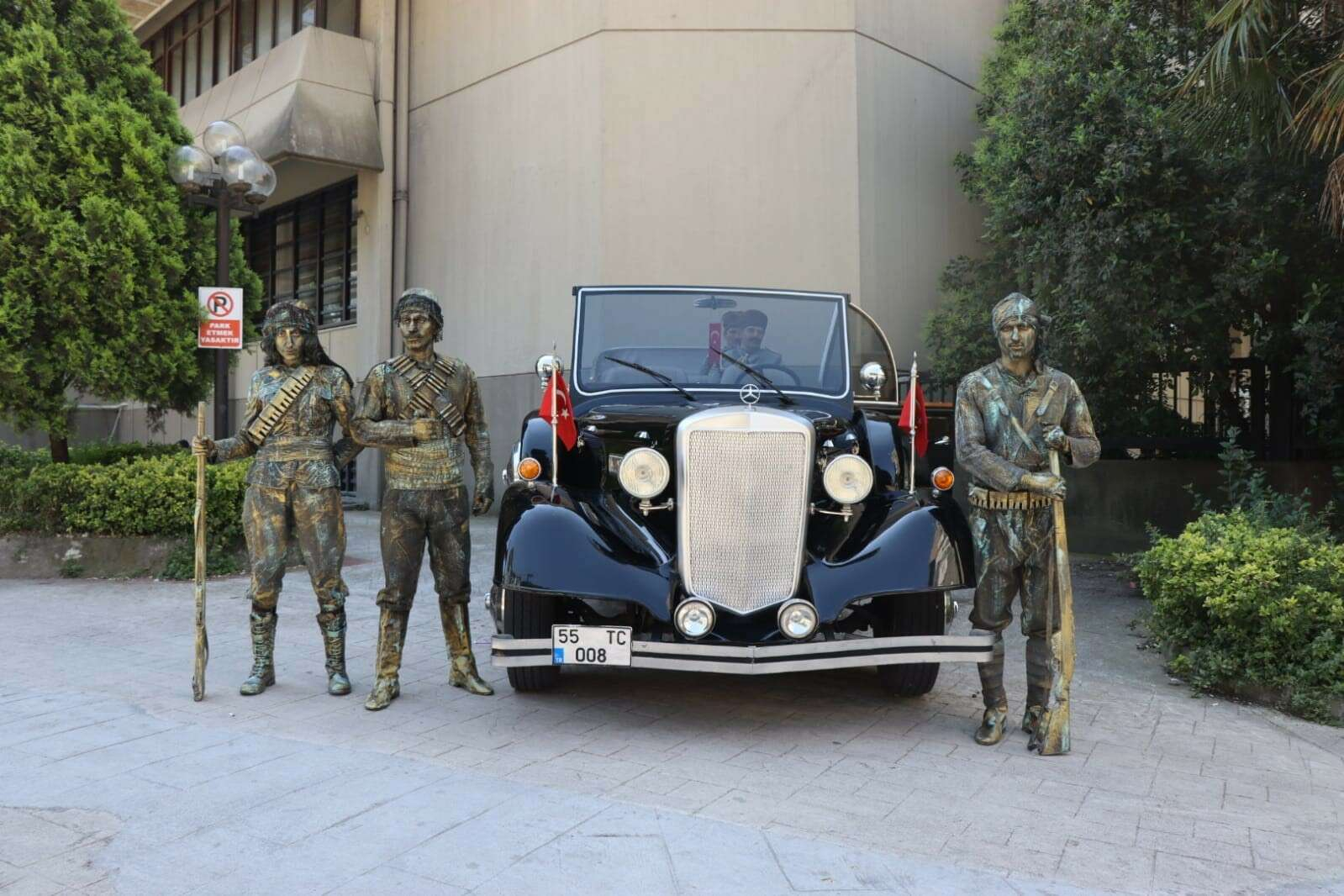 Vatandaşlar doyasıya eğlenirken orijinali Anıtkabir Atatürk Müzesinde sergilenen, 1935-1938 yılları arasında Mustafa Kemal Atatürk’ün tören arabası olarak kullanılan otomobilin replikası, İzmit’in düşman işgalinden kurtuluşunun 102’nci yıl dönümü dolaysısıyla İzmit’te sergilendi. Kentin dört bir yanında gezdirilen araç ve Atatürk'ün balmumu heykeli vatandaşların yoğun ilgisini çekti.