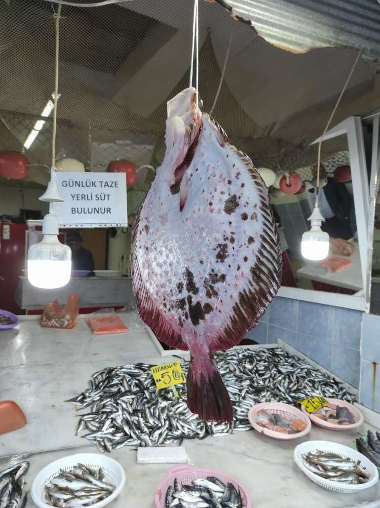 Pazar’da Kardeşler Balıkçılık’ta tezgâha gelir gelmez satılan 7 kg ağırlığındaki kalkan balığı, bir süre askıda kalınca vatandaşların da ilgisini çekti. Karadeniz’de kalkan balığının nadir olarak bulunduğunu söyleyen balıkçı esnafı Murat Kurt, “Genelde nisan ve mayıs aylarında denizlerimizde gözükür. Pahalı bir balık olduğu için herkes alamıyor. Ankara, İstanbul gibi büyük şehirlerde daha çok rağbet görüyor. Bugün ise tezgâha gelir gelmez kilosu bin TL, kendisi 7 bin TL’den anında satıldı. Normalde kalkan ağı derler özel bir ağ ile yakalanır. Bir de gırgırlar, istavrit ağına sardığında orada çıkar. Bazen hamsi ağında da çıkar. Büyük gırgırlarda da yakalanabiliyor” dedi.