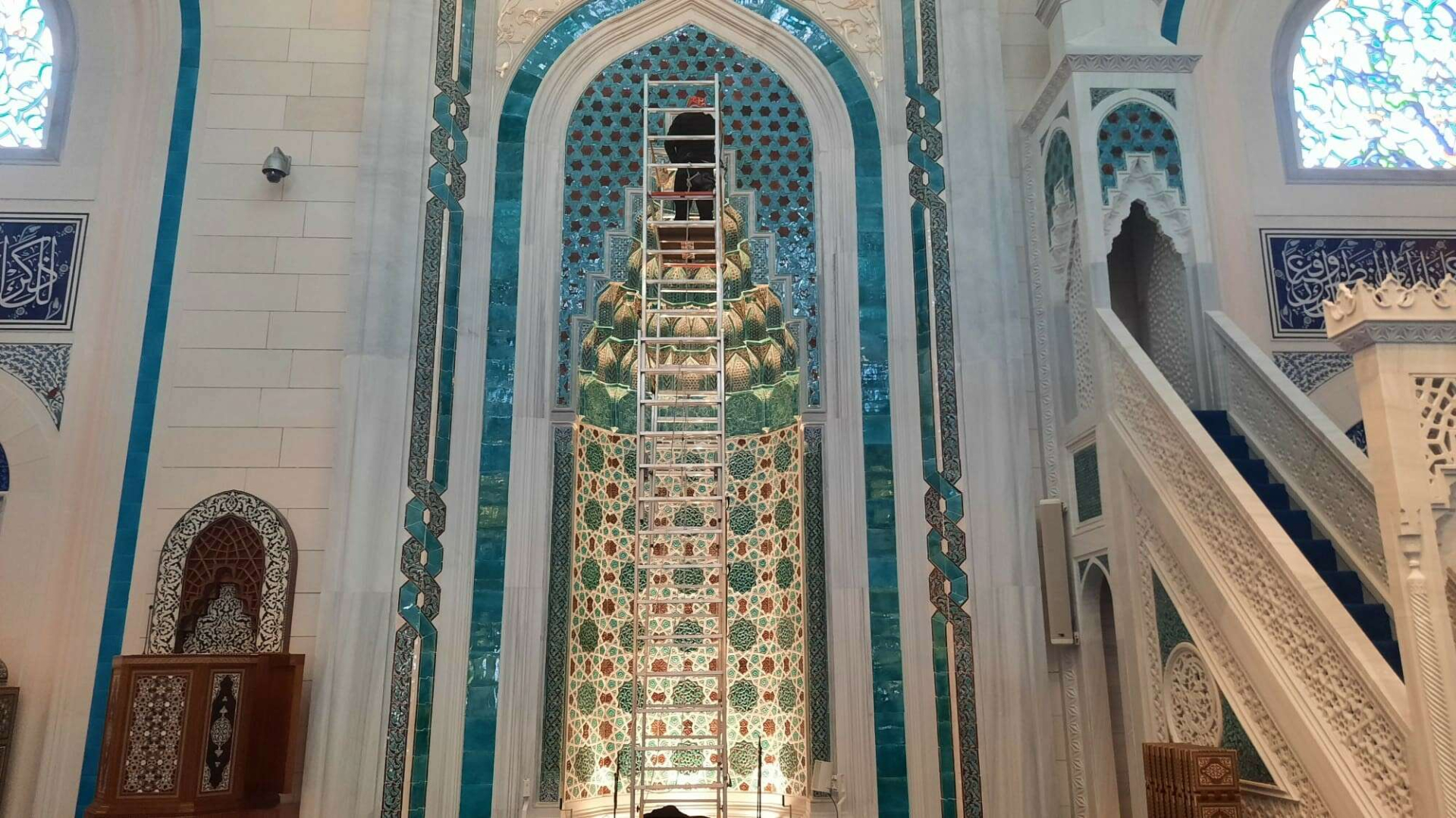 Külünk, “3 Temmuz 2021’de Sayın Cumhurbaşkanımız Recep Tayyip Erdoğan Beyefendi'nin teşrifleriyle temel atma merasimimizi gerçekleştirdik. Temel atma merasimimizden sonra hızlı bir şekilde cami inşaatımıza başladık ve 35 ay gibi sürede, bu büyüklükte bu yoğunlukta bir inşaatı, şükürler olsun tamamladık. Artık günler demiyoruz, haftalar demiyoruz, saatler sonra inşallah camimizi cemaatiyle buluşturmuş olacağız. Yarın cuma. Cuma namazıyla beraber camimiz cemaatiyle buluşmuş olacak. Her gün 150-200 insanın artı 20’ye yakın teknik personelin mimar, mühendis, tekniker gibi teknik personelin çok yoğun çalışma ve gayretleriyle projemizi bu hale getirdik. Sayın Cumhurbaşkanımız projemizin adını Barbaros Hayrettin Paşa Camii olarak ilan edince ondan sonraki süreçte de camimizde Barbaros'a ve denize doğru bir yoğunlaşma şekilde oldu. Şu an üstünde bulunduğumuz halı deniz yosunu, deniz dalgalarını görebildiğiniz bir deşende. Ana kubbemizdeki yazımız nanoteknolojiyle yapıldı. Yazınızın etrafındaki süslemede bir gemi dümenini, yazımızın ortasındaki 16 köşeli kutup yıldızını da çok rahatlıkla görebiliyorsunuz. Kubbe pencerelerinizde yelkenli görebiliyorsunuz. Buna benzer deniz ve Barbaros'u hatırlatacak birçok detayı, çinilerimizle, minyatürlerimizle bu detayların hepsini görme şansımız olacak. 18 bin 500 metrekarelik bir arazi. Bizim sıfır kotu dediğimiz yani şu anda camimizin zemin kotunun altında 4 tane daha katımız var. Bu dört katta otoparklarımız var, kültürel ve sosyal etkinlik alanlarımız var. Müftülüğümüzün organize edeceği, çalıştıracağı 4-6 yaş kreşimiz, anaokulumuz var. Kitap kahve bölümümüz var. Dijital sanatların sergileneceği farklı atölyeler olacak. Avlusunda ve dış avlusunda toplam 20 bin insanın aynı anda ibadet edebileceği bir cami olarak tasarlandı ve hayata geçirildi” dedi.