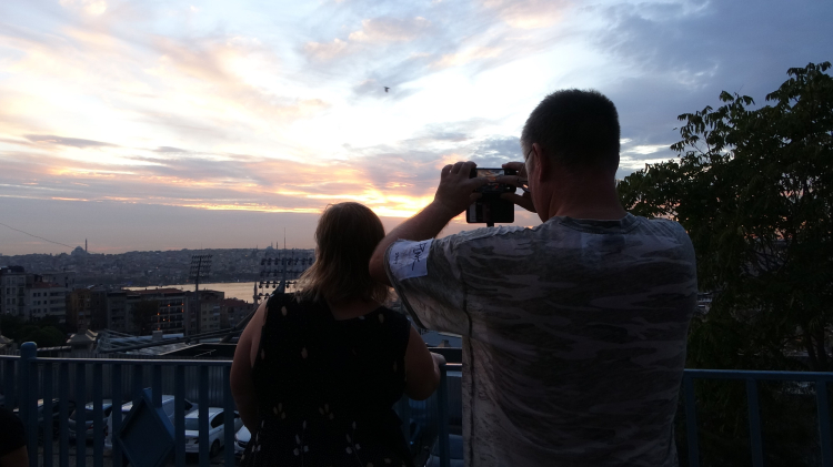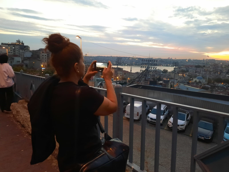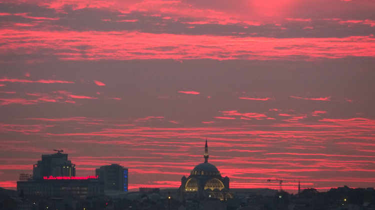 İstanbul Beyoğlu'nda gün batımı kartpostallık manzara oluştururken, vatandaşlar o anları kayıt altına aldı.