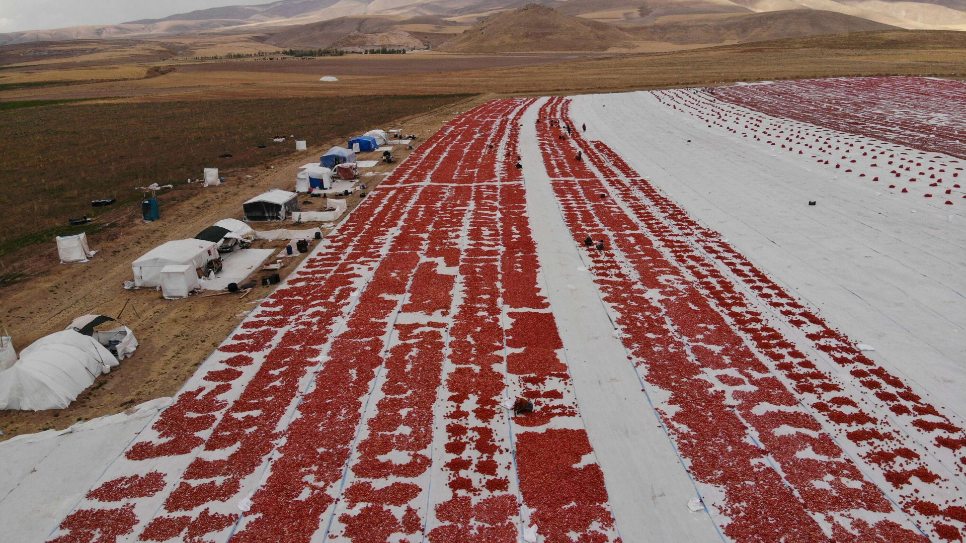 Bitlis’in Adilcevaz ilçesinde hasat edilerek kurutulmak için tarlalara serilmeye başlanan domatesler, İtalya başta olmak üzere Avrupa ülkelerine ihraç ediliyor.