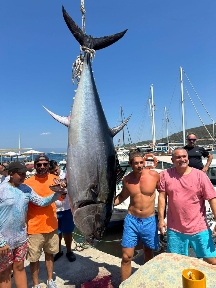 Bodrum’da yaşayan Kayahan Eser, Metincan Alın, Emirhan Tahir ve Deniz Aras Korkmaz isimli 4 amatör balıkçı sabah saat 06.00 sıralarında Gölköy’den denize açıldı. Didim açıklarında avlanan balıkların oltasına sabah 08.00 sıralarında büyük bir balık takıldı. 4 amatör balıkçı, dev balığı yukarı çekmek için çaba harcadı fakat başarılı olamadı. Dev balık, amatör balıkçıların 7 metrelik teknesini 5 saatte Didim açıklarından Türkbükü açıklarına kadar sürükledi.