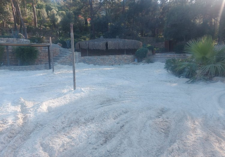 Muğla'nın Bodrum ilçesinde her sezon başında tartışmalara neden olan beyaz kum sevdası yeniden ortaya çıktı. İşletmeye, Kabahatler Kanunu gereği en üst limitten cezai işlem uygulanarak, kumun kaldırılması için 2 gün süre verildi.