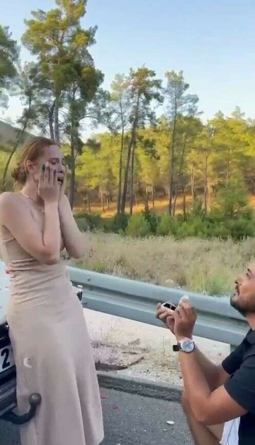 Antalya’da trafikte kavga ediyormuş gibi yapan bir genç, sinir krizi geçiren kız arkadaşına evlenme teklifi etti. Yaşadıkları karşısında büyük şok geçiren ve kendine gelmekte zorlanan genç kız teklifi kabul etti.