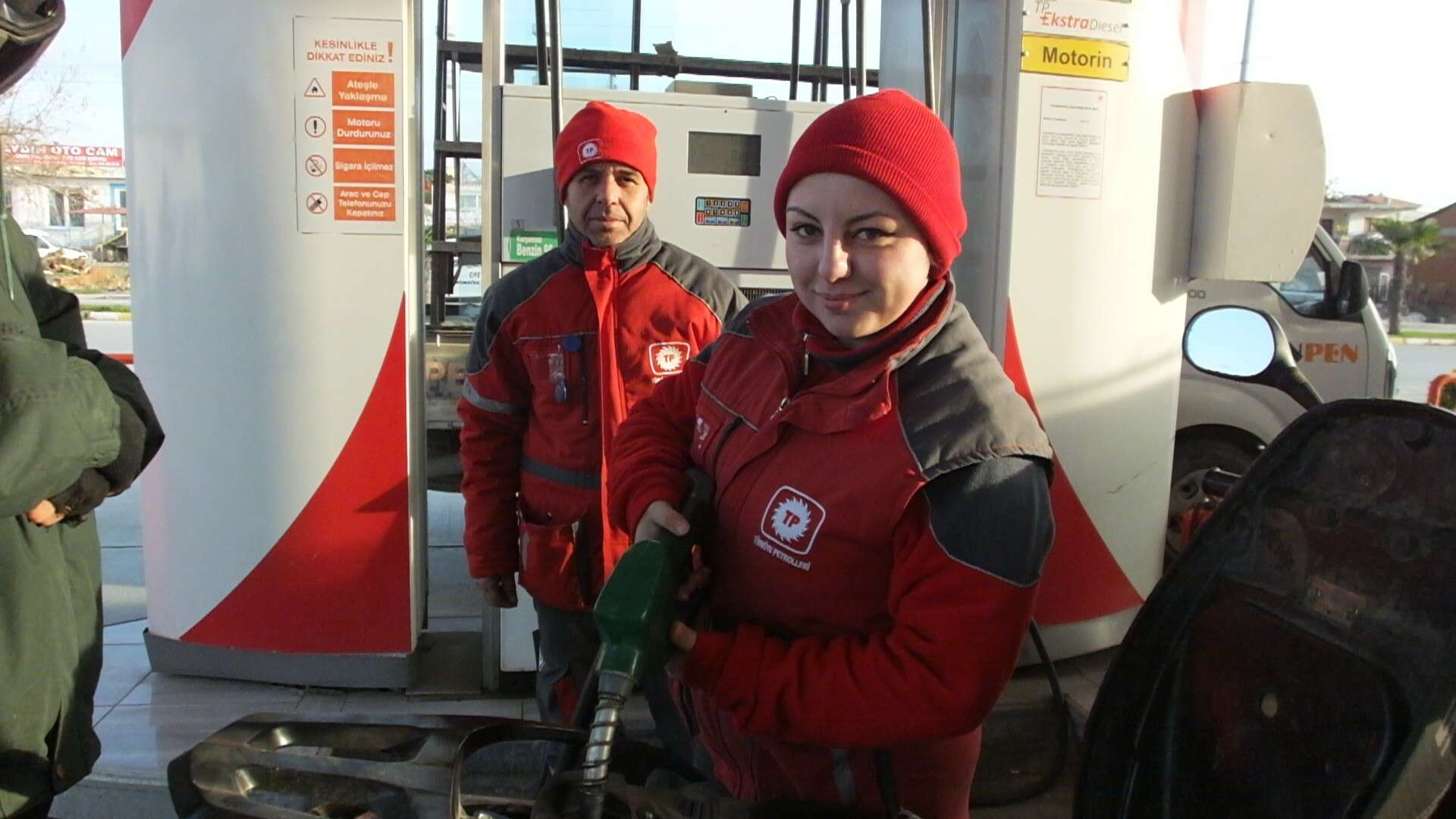 Akaryakıt istasyonunda erkek arkadaşları ile birlikte çalışan Büşra Aynalı ve Ümmühan Coşkun, iş yeri sahibinin ve müşterilerin takdirini kazandı. Erkek çalışanlarla birlikte görev yapan kadın pompacılar, işlerini severek yaptıklarını söyledi. İş yerindeki çalışan 6 kişinin ikisi kadınlardan oluştu. Açık öğretim lisesi mezunu Ümmühan Coşkun, "Buraya akaryakıt almaya gelmiştim. Kadın pompacı alınacağını duyunca başvurdum. Burada iş sahibi oldum. İşimi severek yapıyorum" diye konuştu.