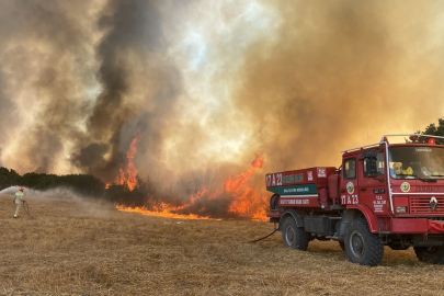 Biga ilçesine bağlı Balıklıçeşme köyünde, Bursa-Çanakkale karayolu yakınındaki bölgede alevlerin yükseldiğini görenler, durumu ekiplere bildirdi.