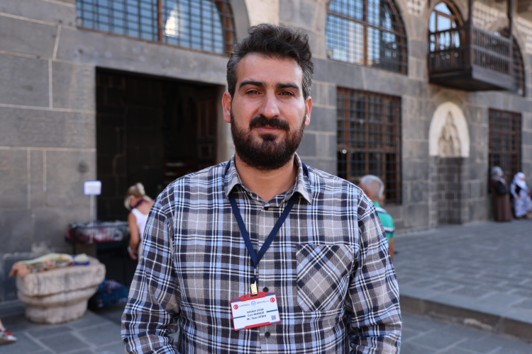 “Geldikleri zaman, camimizin girişinde giyiniş kurallarıyla alakalı oluşturmuş olduğumuz 6 dilde panomuz bulunuyor. Ziyaretçiler içeri girdikleri zaman başörtü ihtiyacı olan misafirler başörtü alarak cami ziyaretlerine başlıyorlar. Yabancı grupları çoğunlukla ağırladığımız sezonlar oluyor. Bu süreç içerisinde geçen hafta Bursa'da renkli görüntüler şahitlik ettik. Aslında o görüntülerde Diyarbakır Ulu Cami'sinde 5 yıl içinde birçok kez karşılaştığımız görüntüler olduğunu ifade edebilirim.”