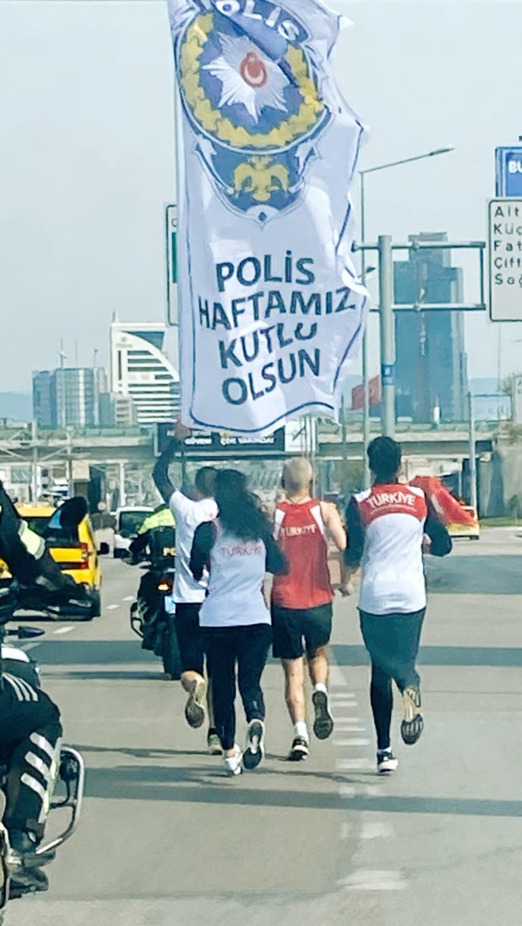Türk Emniyet Teşkilatı'nın 180. yıldönümü dolayısıyla Bursalı 4 maratoncu, açtıkları pankartla birlikte 6 kilometre koştu.