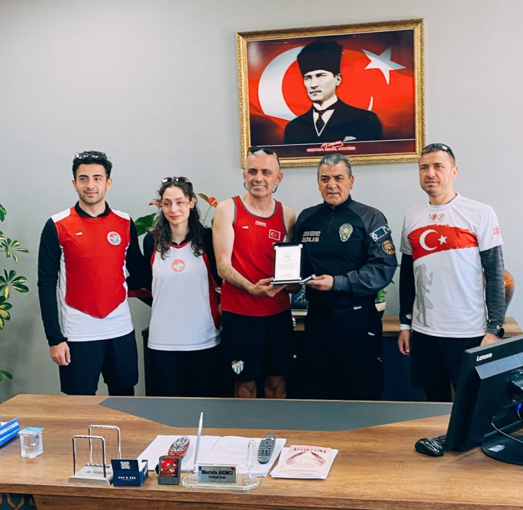 Kent Meydanı'ndan başlayan maraton, 6 kilometre devam ederek Çevik Kuvvet Şube Müdürlüğü'nde son buldu. Sporcuları kapıda karşılayan Çevik Kuvvet Şube Müdürü Mustafa Akıncı karşılayarak makamında ağırladı.