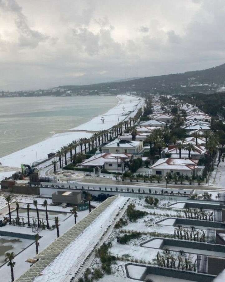 İzmir'in turistik kenti Çeşme'de, sabah erken saatlerde fırtına ile birlikte dolu yağışı etkili oldu. Kentin cadde ve sokaklarını, plajları kar yağmış gibi beyaza bürüyen dolu yağışı, ulaşımda zaman zor anlar yaşattı.