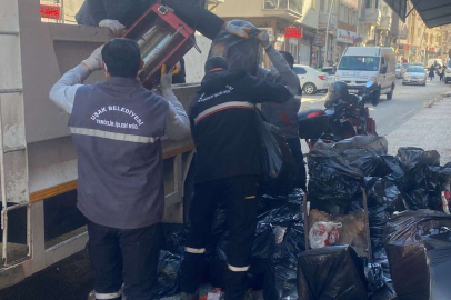 Uşak’ta kötü koku sebebiyle bir binaya giren belediye ekipleri, evin içerisinde gazete, pet şişe ve kirli kıyafet gibi 10 kamyon çöp topladı.