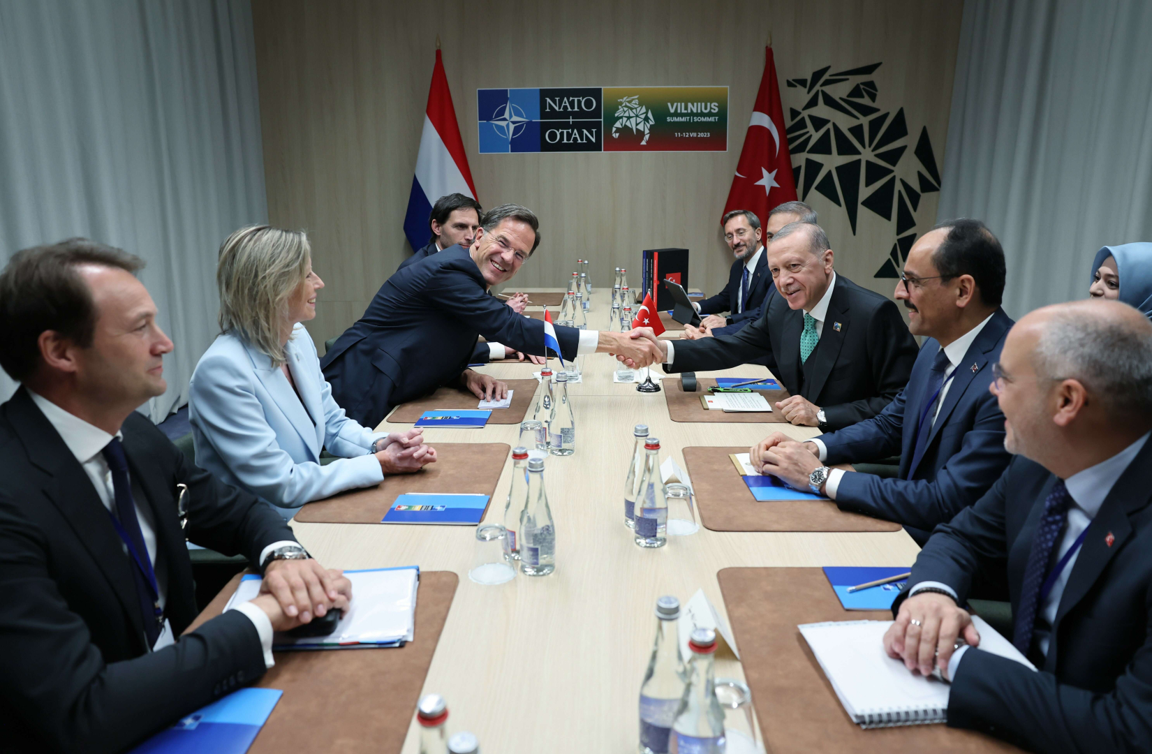 Cumhurbaşkanı Recep Tayyip Erdoğan, Litvanya’nın başkenti Vilnius’ta düzenlenen NATO Devlet ve Hükümet Başkanları Zirvesi kapsamında ikili görüşmelerine devam ediyor. Cumhurbaşkanı Erdoğan, İspanya Başbakanı Pedro Sanchez ile görüşmesinin ardından Hollanda Başbakanı Mark Rutte ile bir araya geldi.