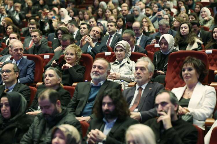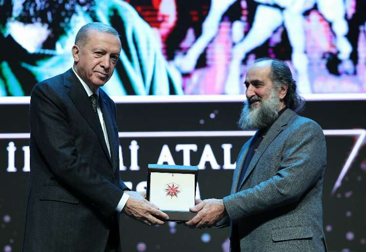 Tarihin bu iğrenç tabloyu, buna yol açanları, buna göz yumanları, bunu meşrulaştırmaya çalışanları hak ettikleri şekilde yargılayacağını söyleyen Erdoğan, "Biz bu yargılamanın tarihe bırakılmadan hemen yapılması gerektiğine inanıyoruz. Başlattığımız girişimler, dünyada giderek daha güçlü destek buluyor. İnşallah 2024 zalimlerin hak ettikleri cezayı gördüğü, mazlumların yaralarının sarıldığı bir yıl olacaktır diye inanıyorum. Ülkemizi her alanda olduğu gibi kültür sanat faaliyetleri konusunda da Türkiye Yüzyılı hedeflerimize uygun bir seviyeye yükseltmekte kararlıyız. Cumhuriyetimizin ikinci asrını Anadolu'daki varlığımızın bin yılını hakkıyla değerlendirmenin yolu, medeniyetimizi maddi ve manevi tüm unsurlarıyla yeniden şaha kaldırmaktan geçiyor. Bu kutlu yolda en büyük desteği de siz kültür, sanat insanlarımızdan bekliyoruz. Kültür, sanat insanlarımızın ruhunu biçimlendirmediği, gönlünü kıpırdatmadığı, kalp atışını hızlandırmadığı bir kalkınma programı sadece şekilden, yani cesetten ibaret kalır. Sizlerden alacağımız güçle dünyaya Türkiye Yüzyılı'nın mührünü, ruhu ve bedeniyle bir bütün olarak kuracağımıza yürekten inanıyorum" dedi.