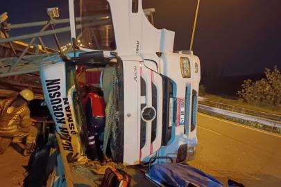 Damperi açık kalan TIR, EDS direğine çarpıp devrildi